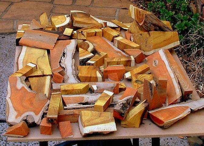 Just remembered a pic from a few years ago after cutting pen blanks from Conkerberry. Some Mulberry in amongst them, no use at this time for the waste gave it to a jewelry maker.