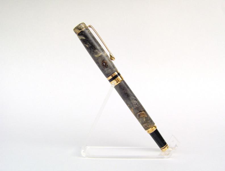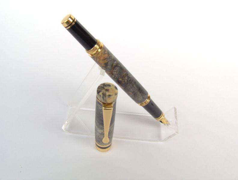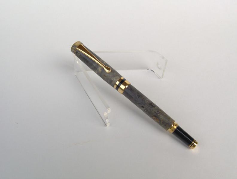 This is one of Constant`s blanks.Buckeye Burl American Classic, Gold hardware with augmented finial. The review is in the test section of this forum. Carl