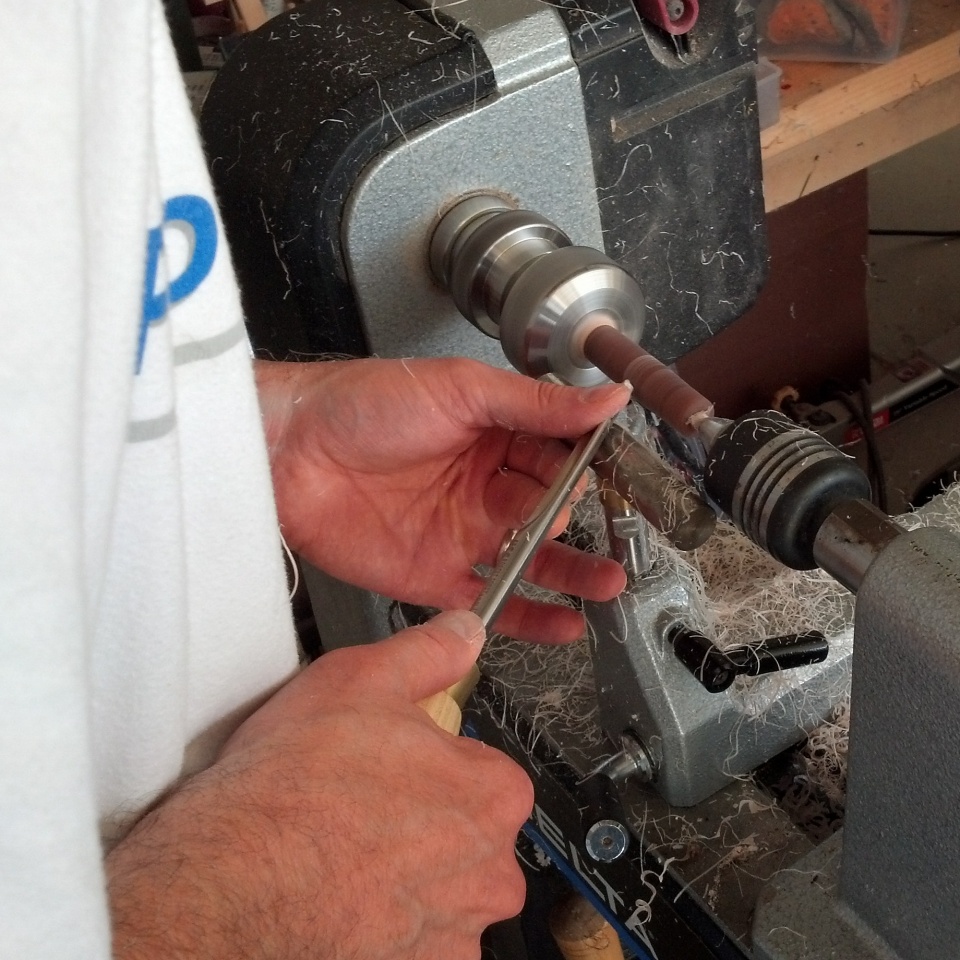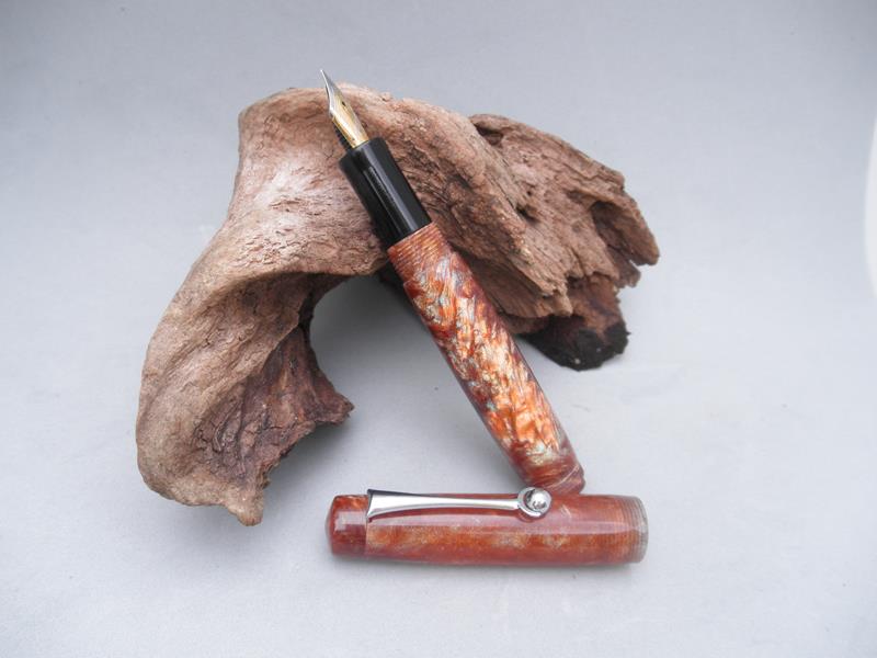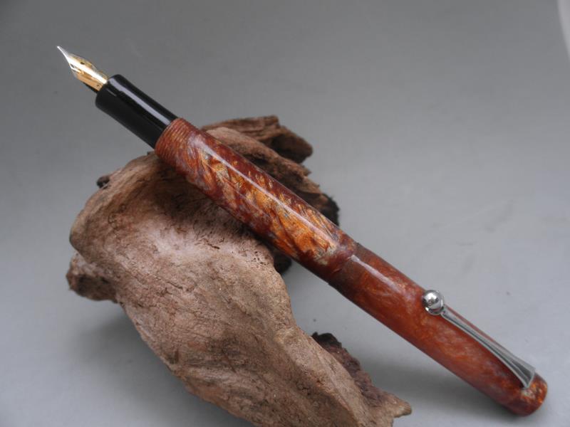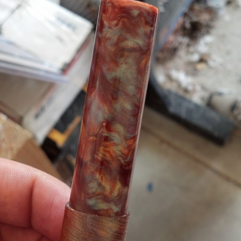A few weeks ago I had the opportunity to spend another day with Jonathon Brooks to continue my education in the world of kitless. The result was a small fountain pen you can see in the pictures below. The pictures definitely do not do the blank justice. The way this thing sparkles and changes color in sunlight is incredible. As always Jonathon and Shea were great hosts and I thoroughly enjoyed the day. Jonathon is a great teacher and is very giving of his time and skill.