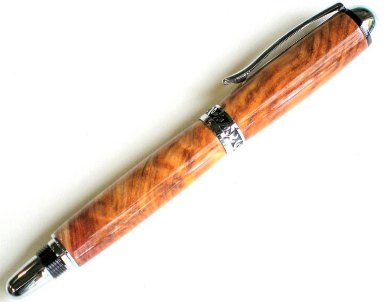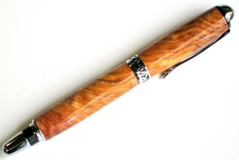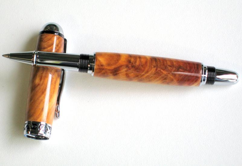 I have recently started to slice up a burl that I have been hoarding for too many years. I couldn't wait to see what it looked like on a pen, so knocked up this Sedona on the weekend. Hope you like it, click on the pics to enlarge. The first 5 show the pen being rotated.