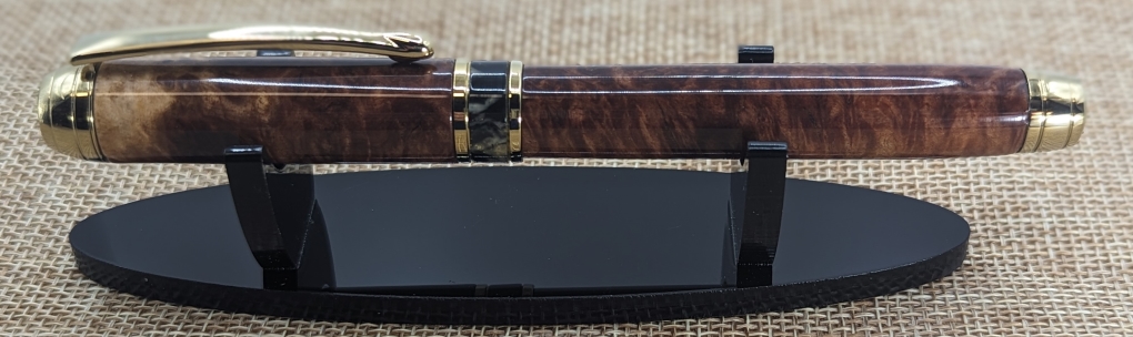Coolibah burl on Mistral gold with custom band and jewel. Finished with Mercury Flex and Zona paper. This is the first time I've used the custom band bushings they offer, which is a shame because I bought 'em last year. I am pretty happy with how this one turned out because I would be crying if I blew the blank.