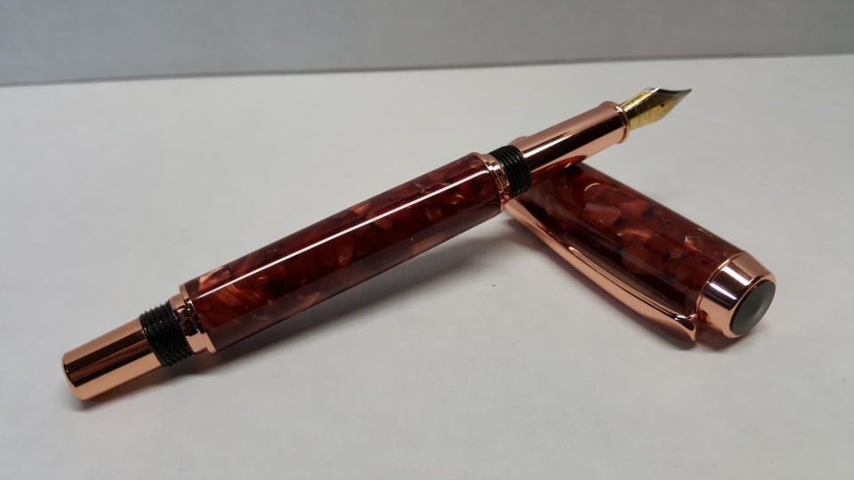 jd420214 Member Joined Feb 6, 2015 Messages 65 Location New Lothrop MI Nov 22, 2015 #1 Here is my latest pen it's a copper Baron in a copper nugget I made this for my wife she loves copper and fountain pens this one she can keep. Attachments image.jpg 88.7 KB · Views: 372