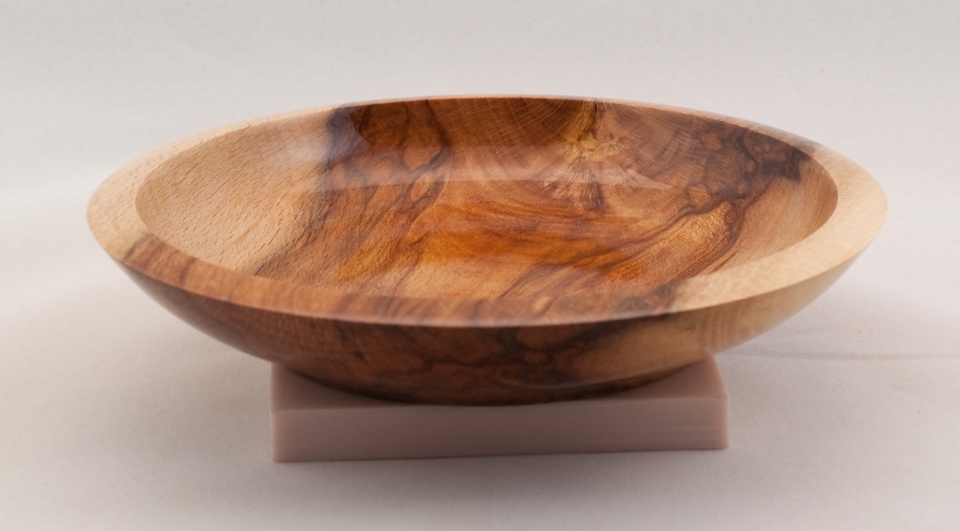 Copper Beech Plate. When the largest Copper Beech in Connecticut finally died, some of the wood was turned over to local crafters. This if the first and smallest piece I received. Around 7" (18 cm) across. Finished with oil and polyurethane. This piece will end up in a charity auction in Shelton.