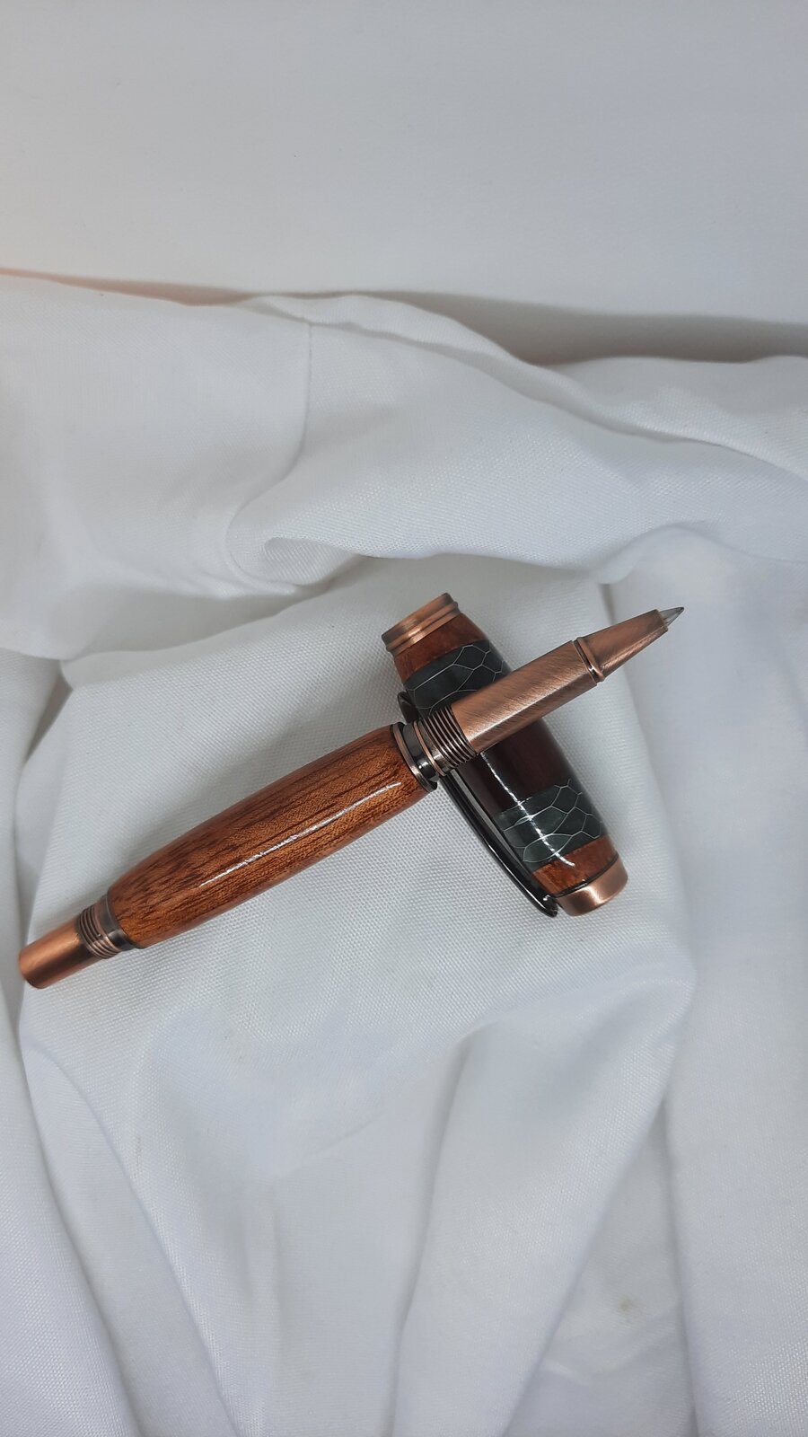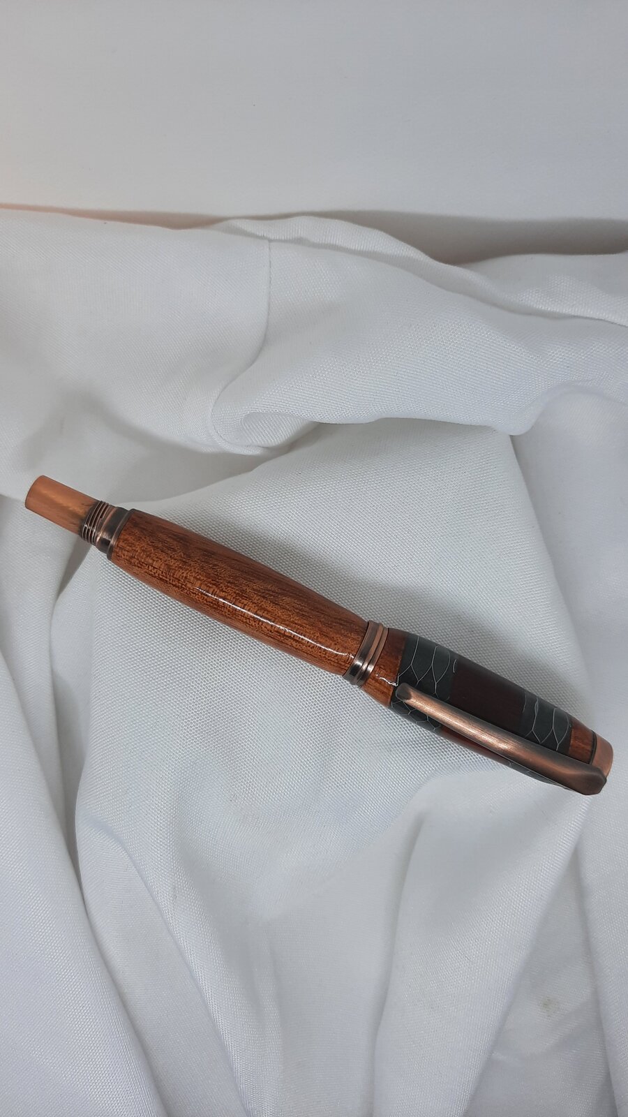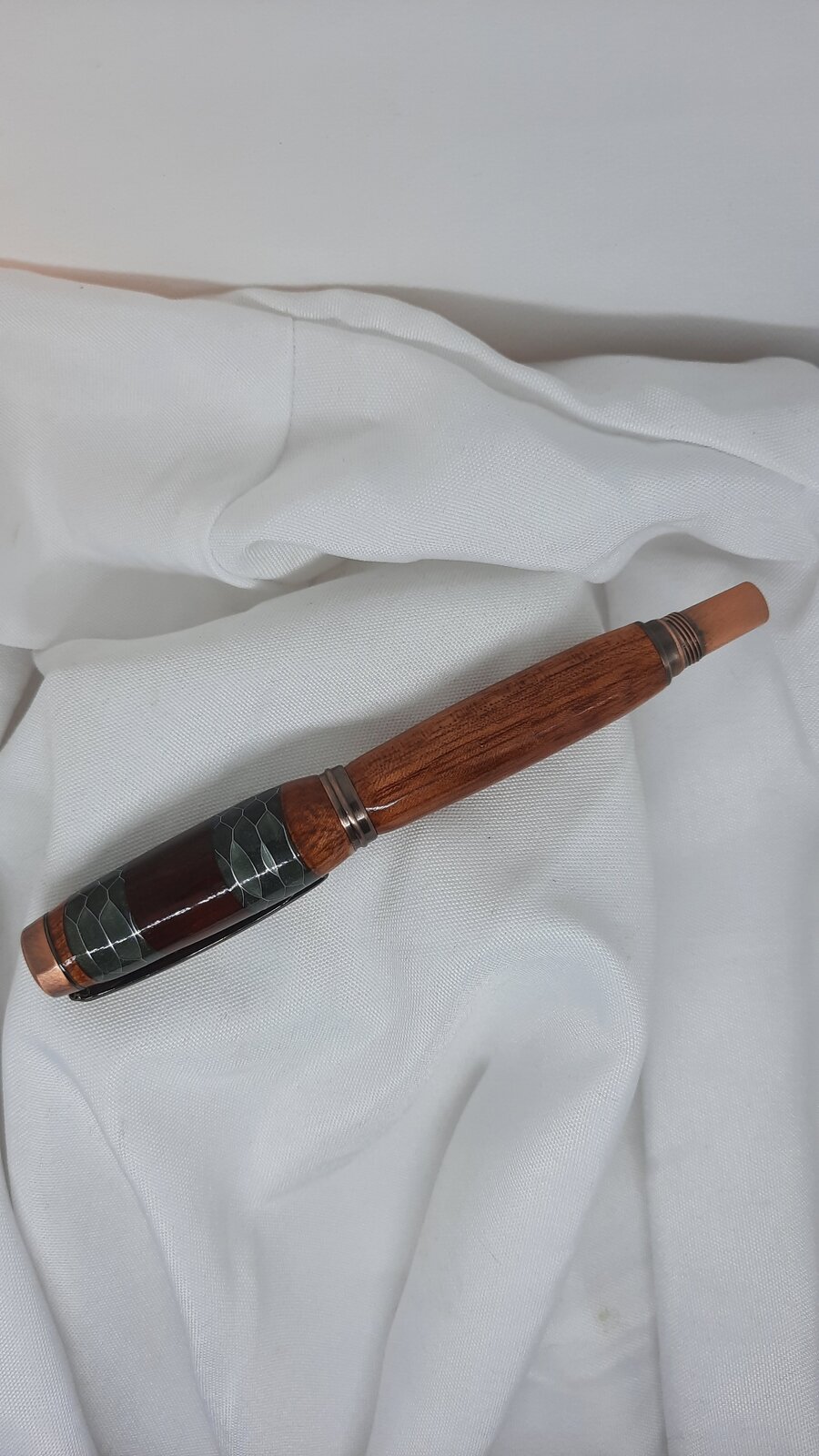 This is a nice segmented blank I purchased and I matched it with the copper frame.