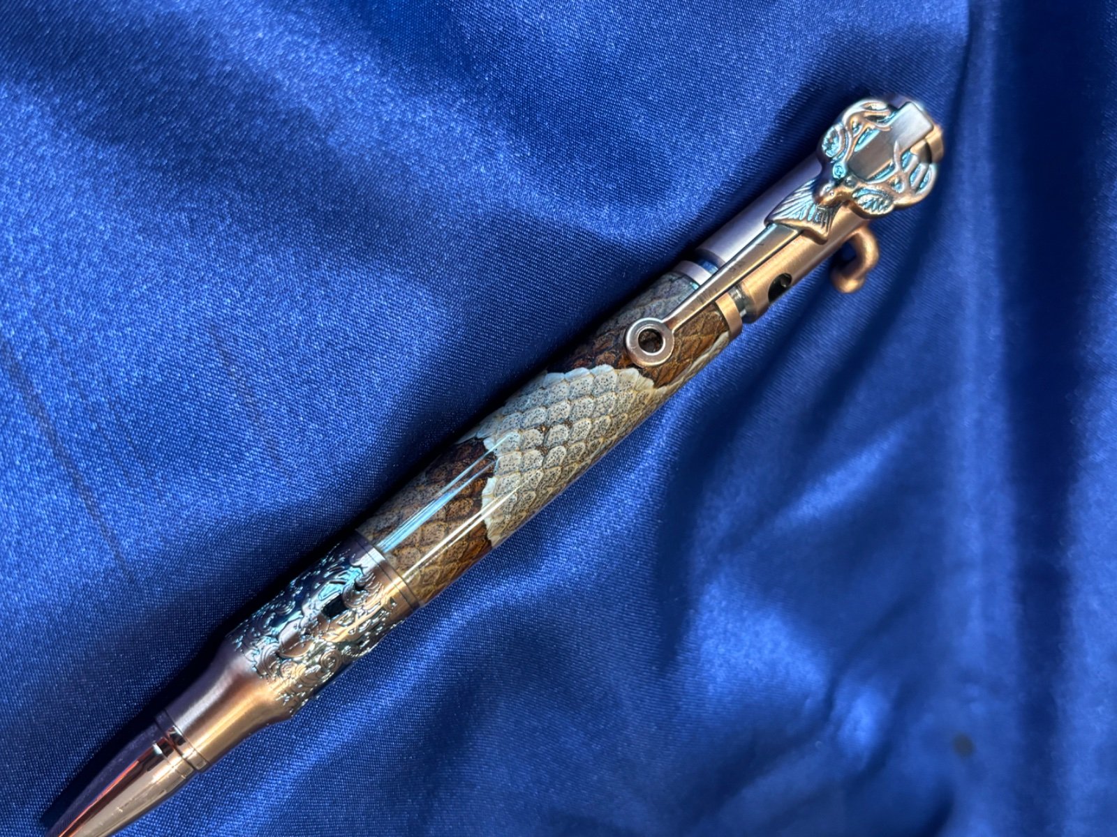 I'm not a big fan of copper platings but I like this one. A friend asked me to make him a snakeskin pen and he liked the copper platings. I had a few blanks cast so I was able to match it with the kit. I'm pleased with the outcome.