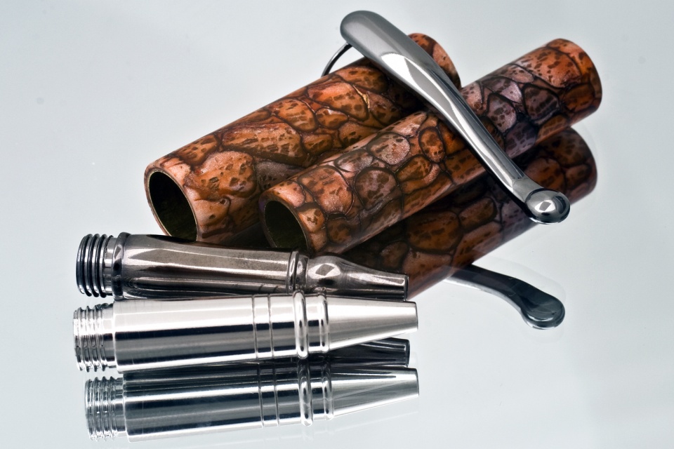 I think the rhodium is a little bright and might take your eyes off the blanks. Where the black ti will compliment the blanks and become pert of the pen. Really like the blanks.