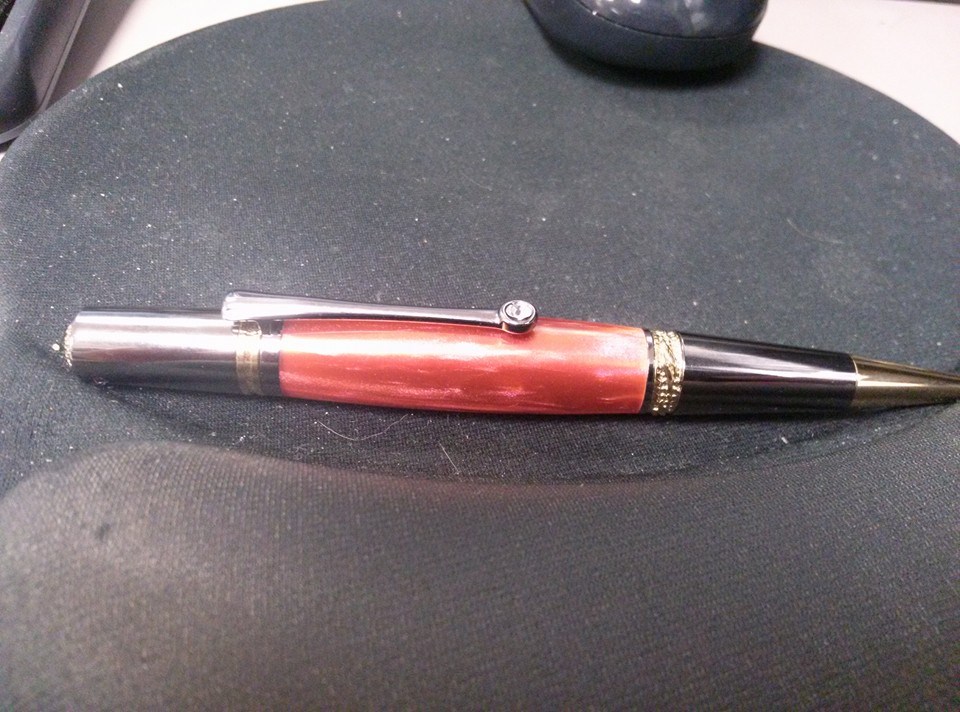 I am far from a photographer as many allready know. I fiugred I would show you all my current carry pen. Sometimes it's orange, red, and other colors. It just depends on what kind of light is hitting it, it's angle, my angle to it.