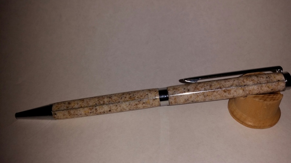 Wanted to try a lengthwise segment and thought I would make it hard on myself by making it a slimline. Used sandstone Corian and aluminum can the long way.