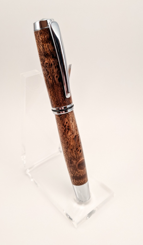 Thanks Mal. The wood was probably solid enough to turn without stabilization, but I feared that the finished pen would be susceptible to denting and cracking, that's why I chose to stabilize. It had the added benefit that it filled some small voids that were present in the wood. I did use cactus juice and vacuum using my homemade pickle jar chamber. It didn't pick up as much resin as some of the other woods, but still finished at about 1.6X dried weight, and turning indicated that it was quite solid throughout.