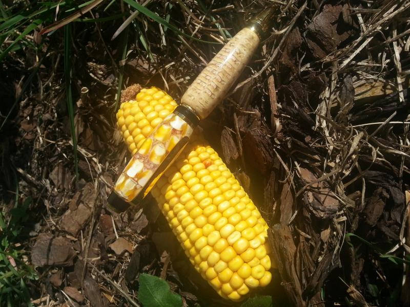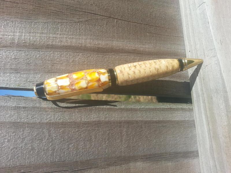 When the PITH pairs were done I had to decide what to do that would be different. That day the farmer next to my shop was picking corn. The pictures show the "rest of the story". Sent this to ken69912001 along with the blank that I made it out of (the corn cob). ps. this was only my second casting and it was like turning something in the micowave (pop,pop,pop) but is was fun just to see if I could do it. Hope Ken enjoys.