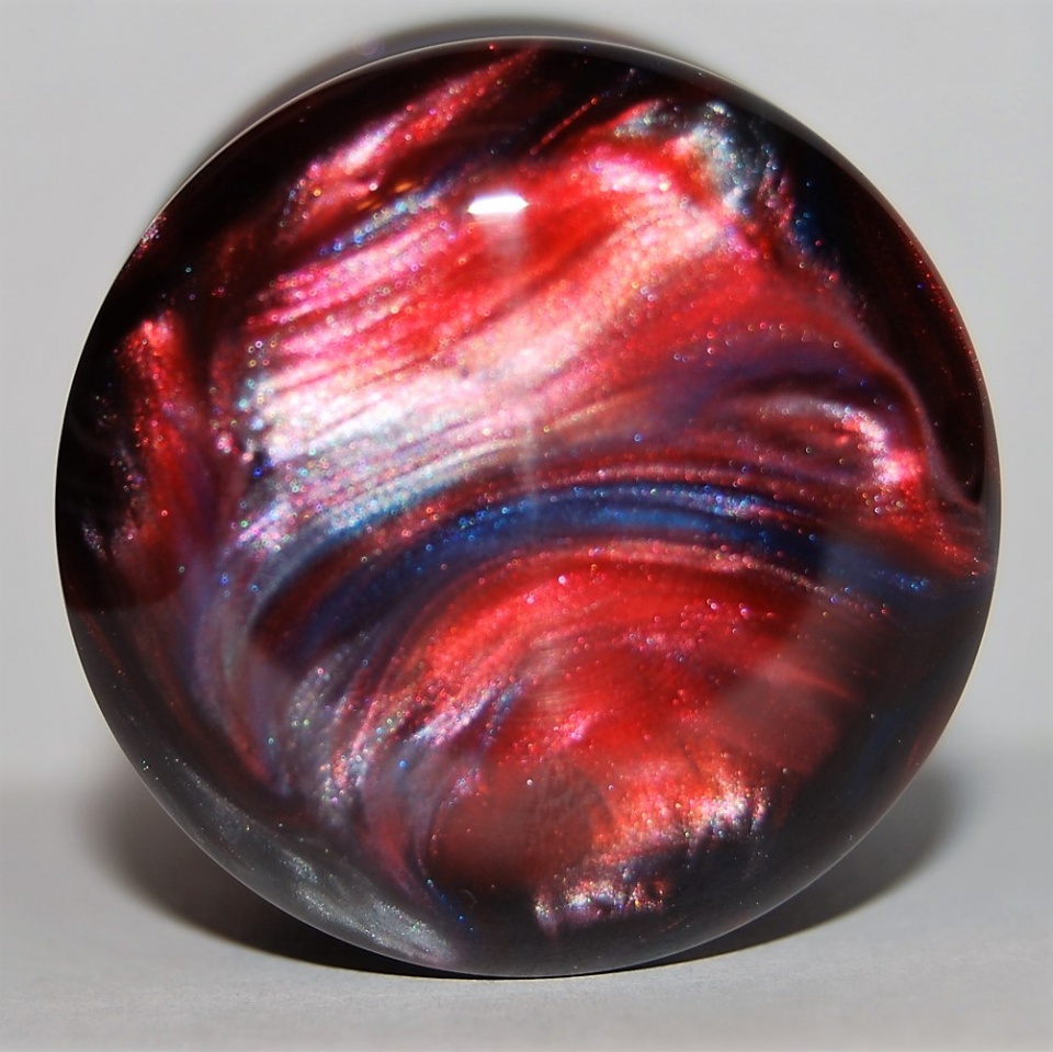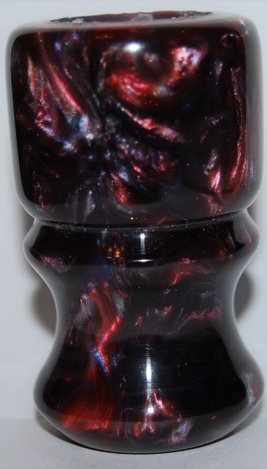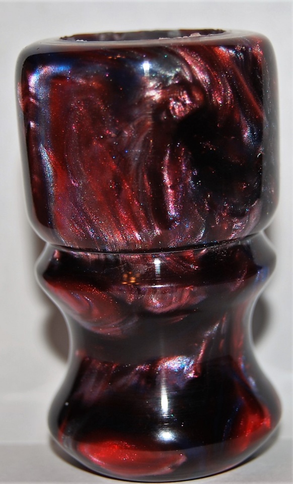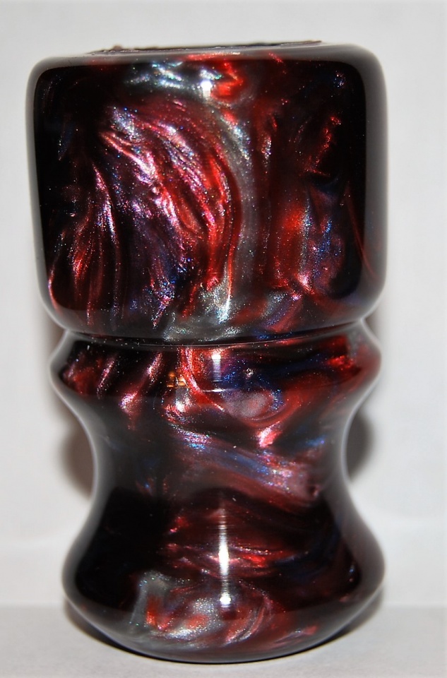 A shave brush I mixed up with PR and Casters Choice Blood Red, Sky Blue, and black with diamond dust added to give it a silverish look.