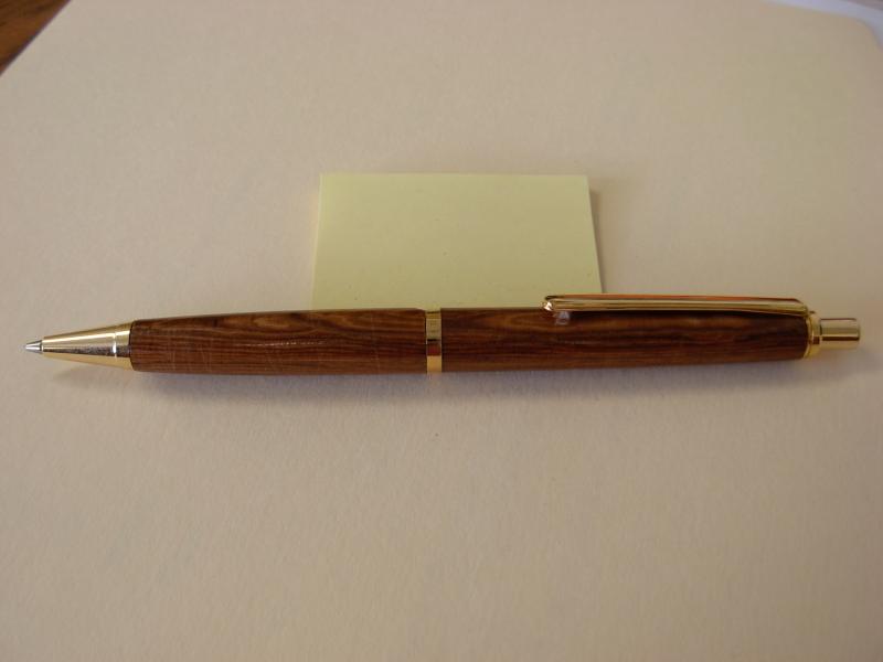 I just got a lathe last week and started turning pens. This one is made from cottonwood bark. It's a favorite of carvers because it is soft. It turned very easily, almost too easily. The finish is several coats of CA glue. The scratches are from dragging the glue tip across the blank. This stuff is soft! Live and learn.