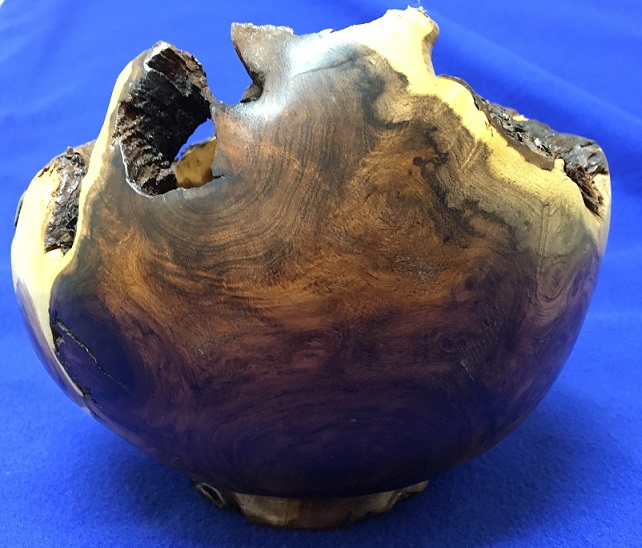 Second is manzanita root burl this stands about 5" tall and 7" wide. The finish is Roberts orange oil and then paste wax.