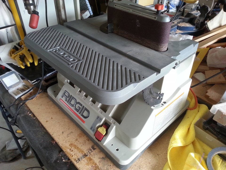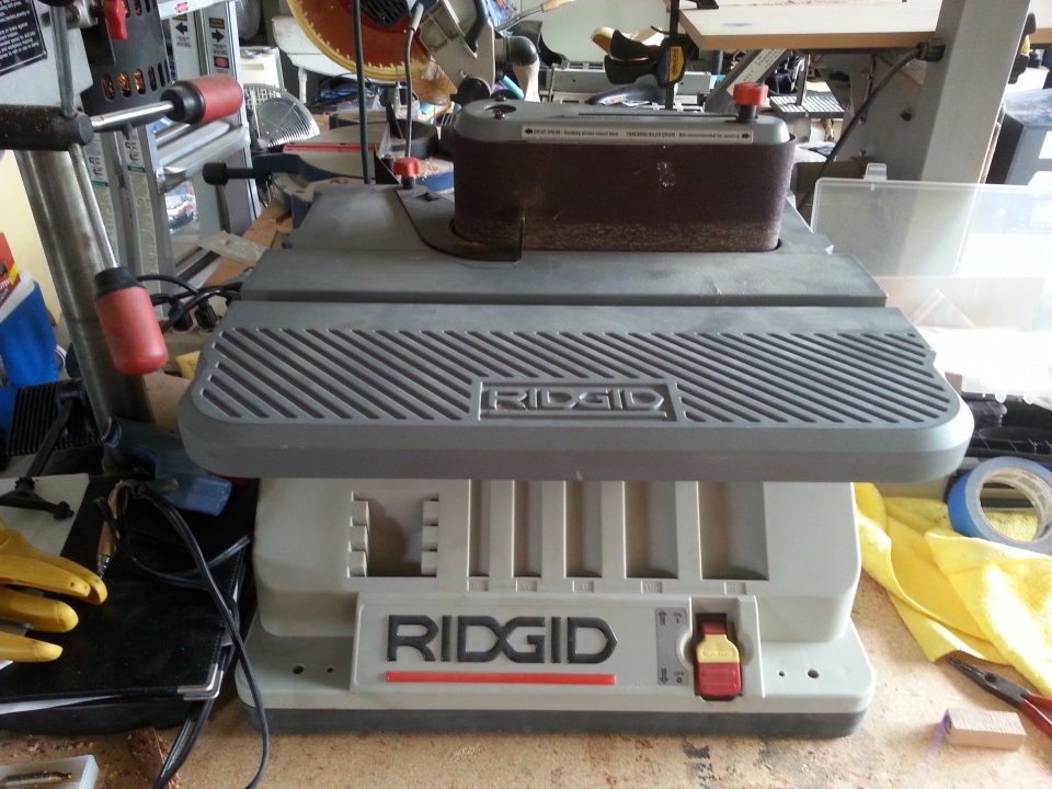 I got another CraigsList score today. A guy was moving and he was selling his RIDGID Oscillating EdgeBelt Spindle Sander EB4424 for $25:biggrin:. It was missing all of the spindles and throat plates for the spindles but the belt was almost brand new and it works great. I can get the spindles and throat plates off of Amazon. I plan on using this to square off the end of my blanks.