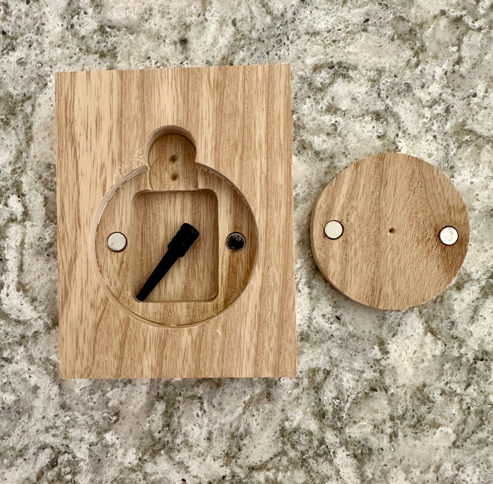 My wife is encouraging me to make another cribbage board to sell. The one I made for us doesn't have peg storage but I wouldn't sell one without a way to store the pegs. Here's my first prototype and I think it'll work just fine. The magnets hold very well.