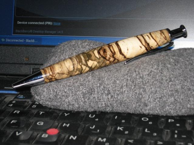 PaulDoug Member Joined Mar 2, 2008 Messages 3,488 Location Benton City, WA. Apr 11, 2010 #3 Great job! Great combo, I love the spalted stuff and the long click is one of my favorite pens. PS - BLO/CA is my favorite finish also... Last edited: Apr 11, 2010