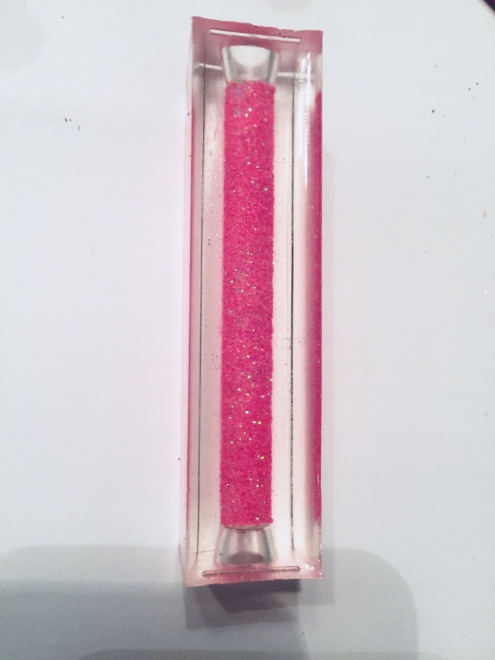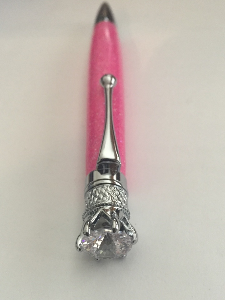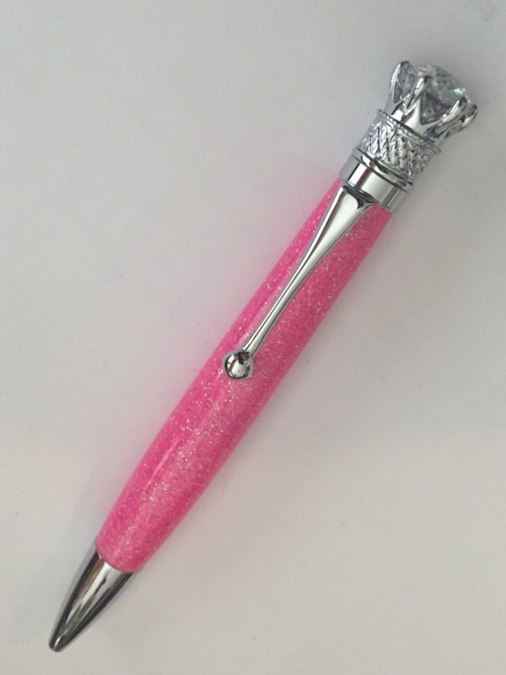 This is my 2nd cast blank. I painted the tube with pink spray paint and I coated in fine pink glitter while still wet. After a few hours I sprayed a coat of clear acrylic and a second dusting of glitter.
