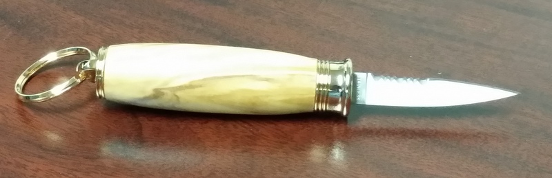 Unique little project !! Only hope you would have if attacked, is that the attacker would die laughing when you pulled it out to defend yourself and asked him to wait until you got the blade out. Great way to use up scrap pieces of wood, and a knife is always handy to have in your pocket or purse when you need to cut or open something. Jim S