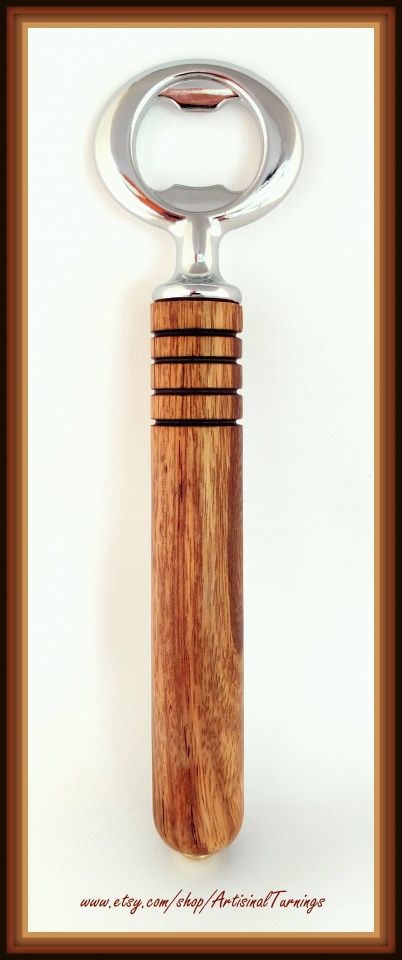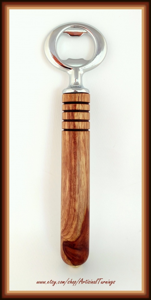 A quick weekend project - bottle opener handle turned from Cuban Mahogany.