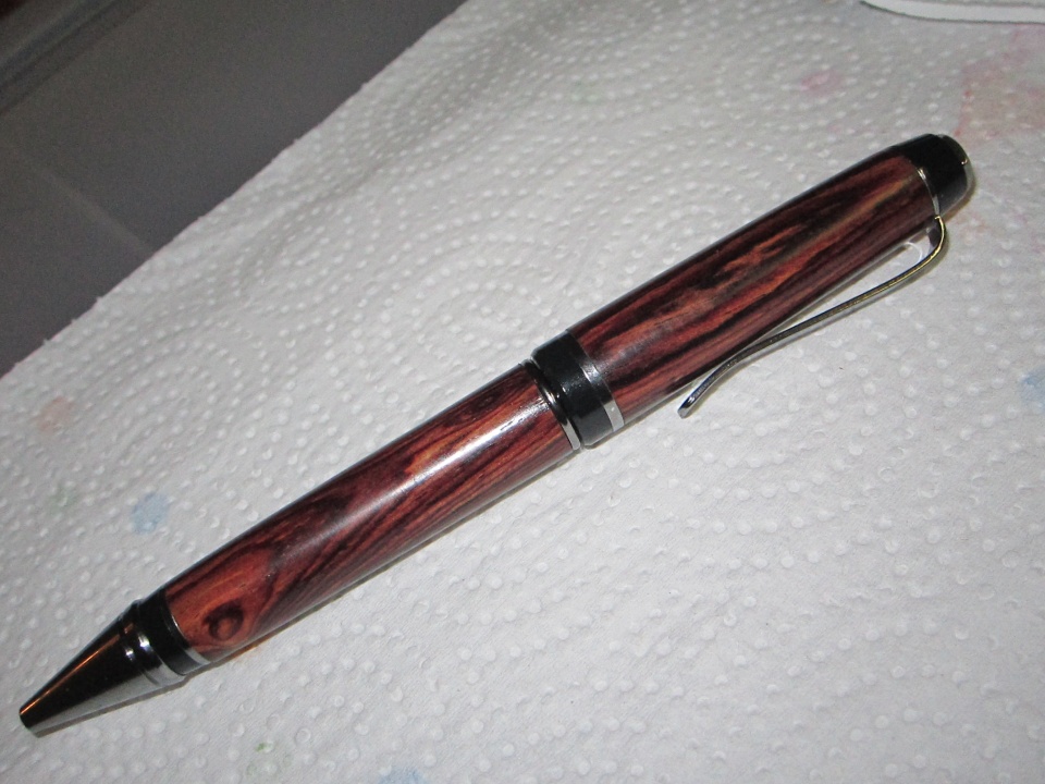 Rocklers Cuban pen kit with cocobolo wood and friction polish. Wish I would have tried a CA finish, Just didn't want to mess it up, but its a good work pen. I really like the pen it has good weight and size to it. Hope you like it.