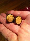 Someone asked about making cuff links. I had tried a set last year so I had an idea about them. I wanted to try something a little different so I figured I could do a 2 wood set. The insets are 5/8 on the top and 5/16 on the bottom. They are just a hair over 1 inch total length and just shy of 3/4 wide across the top. The ebony and acrylic was a test to see if I could inset it. Comment and and Critiques are welcome and thanks for looking