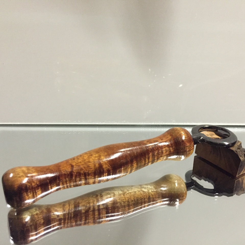 Turned my first bottle opener last night out of a piece of Hawaiian Curly Koa I had. The grain inflection is incredible! I think Koa just took over my favorite wood! I used PSI's bottle stopper 3/8-16 chuck and the diamter of that is a bit larger than the bottle opener flange so I think next time I will add a few pieces of 1/4" plywood as spacers and turn them down to the opener flange diameter so I can get a good rounded over mating finish on the end. Comments and criticism welcome (I have thick skin and know there are a lot of you out there that know wayyyyy more than I do!)