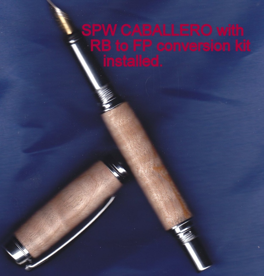 I don't usually enter many pictures of what I made myself because I am not too good at photography and I lost my picture taking spot to my wife's computer. But I kind of like this one - Chrome Caballero with the 1/16th extension to make room for the FP nib in Curly Maple finished with DR KIRK"S MICRO MAGIC three step then a coat of Hud.