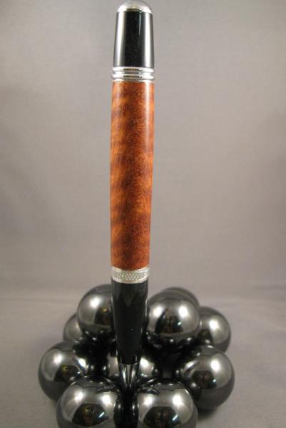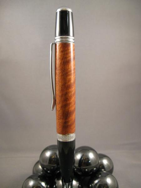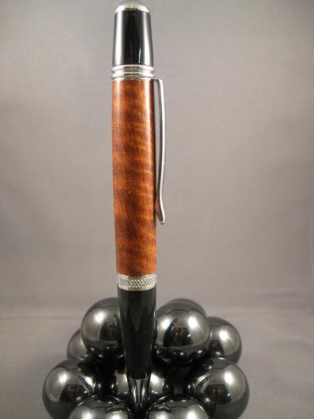 Curly Narra blank I recieved from Neil in the PITH Drawing and the second I have done with this blank the first went everywhere and this one came out. I was trying a new style CA finish for me that Colin from Kallenshan Woods showed me when I was in the shop before Christmas and I still have work to do to perfect it but I liked doing it. If you want to see it here is the link: