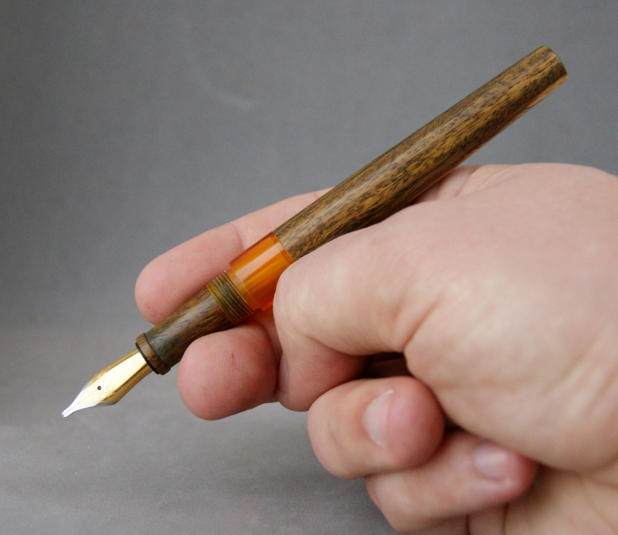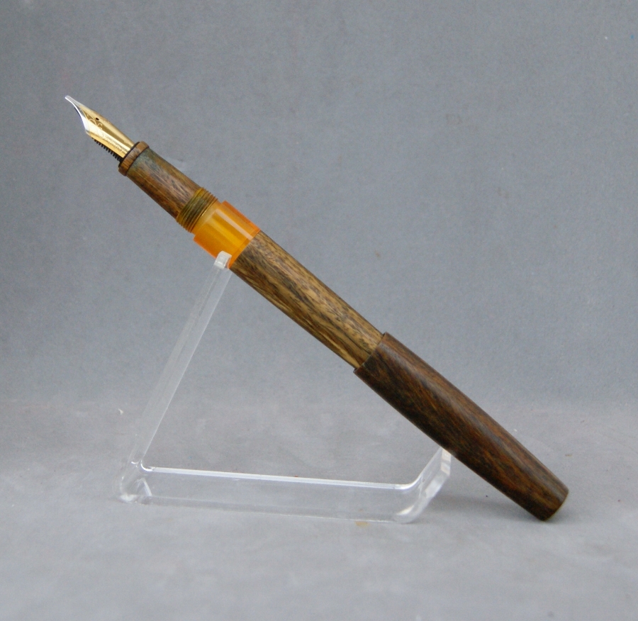 Here's one that I've been wanting and waiting to make for some time now. Things have just been to busy around the house to make anything for myself. Well I made some time and here it is. It's a bulb filler made with Lignum Vitae. The ink chamber is amber alumilite. For those that enjoy the finer details here are the specs.