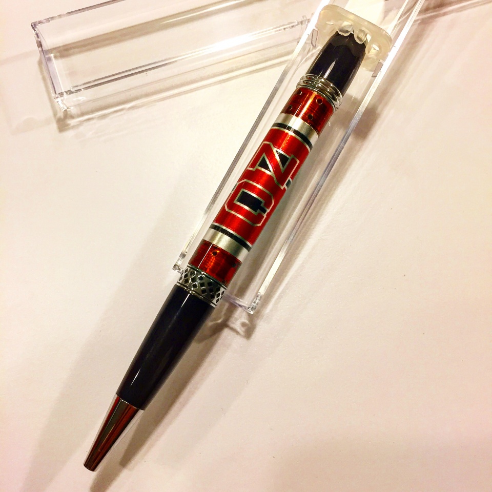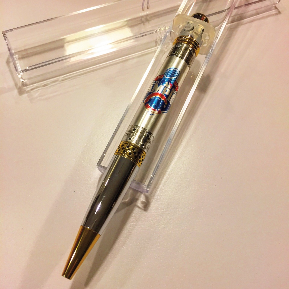 I have been refining my process with the help and advice from a few friends on resin casting custom logos. I started with Alumilite with limited success as I would get a few hazy spots here and there. I decided to reserve the Alumilite to color block pours and get some PR for logos. Here are two examples of some Post-Christmas Christmas gifts. One is an NC State Custom logo and the other is a Cubs World Series Champions Custom Logo pen.