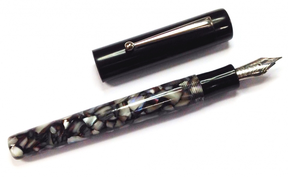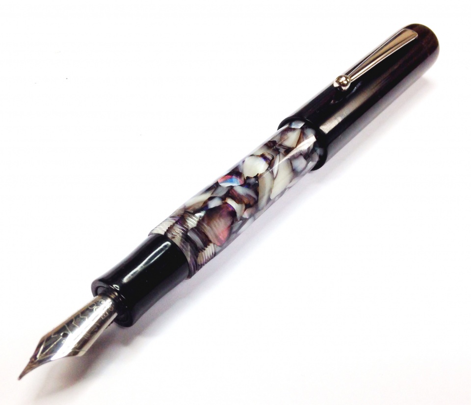 Had an hour or two before I have to go back to work. Thought I would post something made over a stretch of early mornings. It's a custom fountain pen that has an Ebonite cap and section and body from a resin called Cracked Ice. Has a #6 Medium Bock nib and feed at the front end. Doc