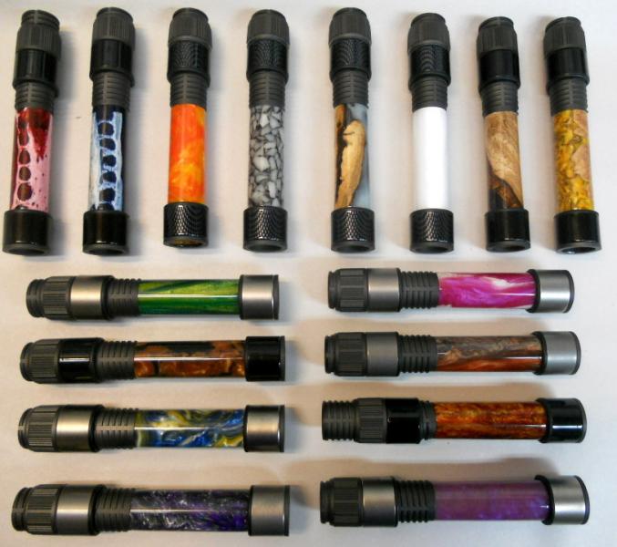 I've been away from the forum for over a year now and haven't turned a pen in almost two years but I didn't stop turning. I make a couple of hundred of these reel seats a year and here's a photo of the few I made this week.