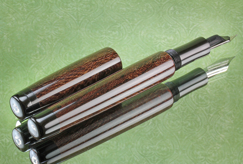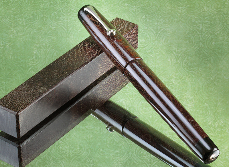The wood is spalted macadamia nut. #6 Bock. Its a large pen about 5 3/4 inch long. The cap at the largest OD is about 15.5mm and the barrel at largest point about 14.5mm. Thanks for looking.