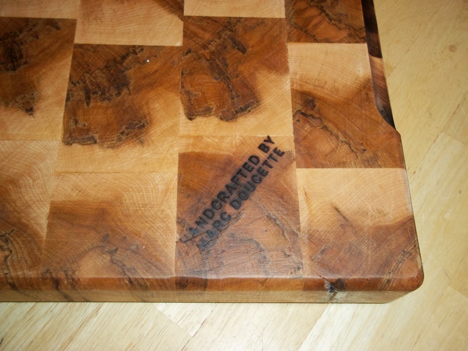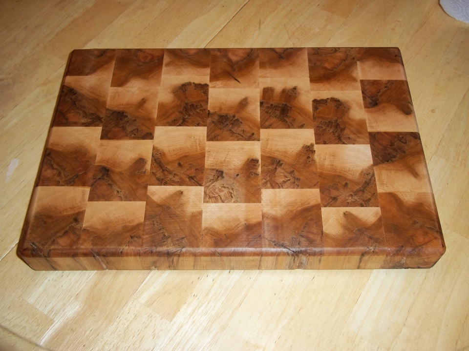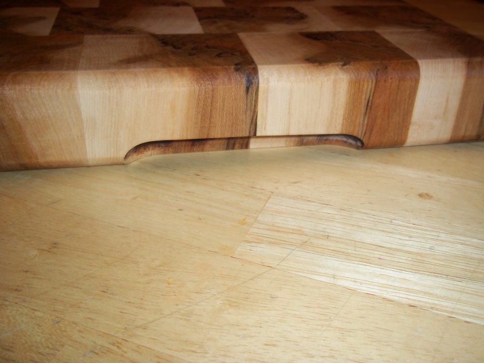 this is a cutting board i started earlier in the week. i went out last night and finished it. it was very therapeutic. its from a length of maple my dad picked up at his work. they are sleepers (i think that's the term) that they lay steel pipe on so they can get fork lift forks under it to pick up the pipe.