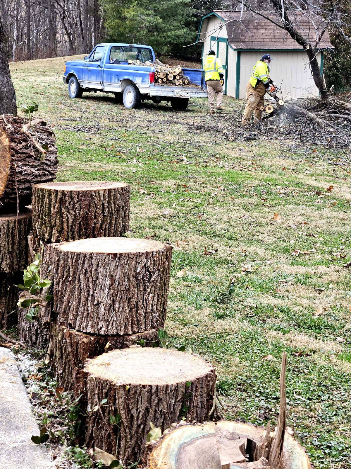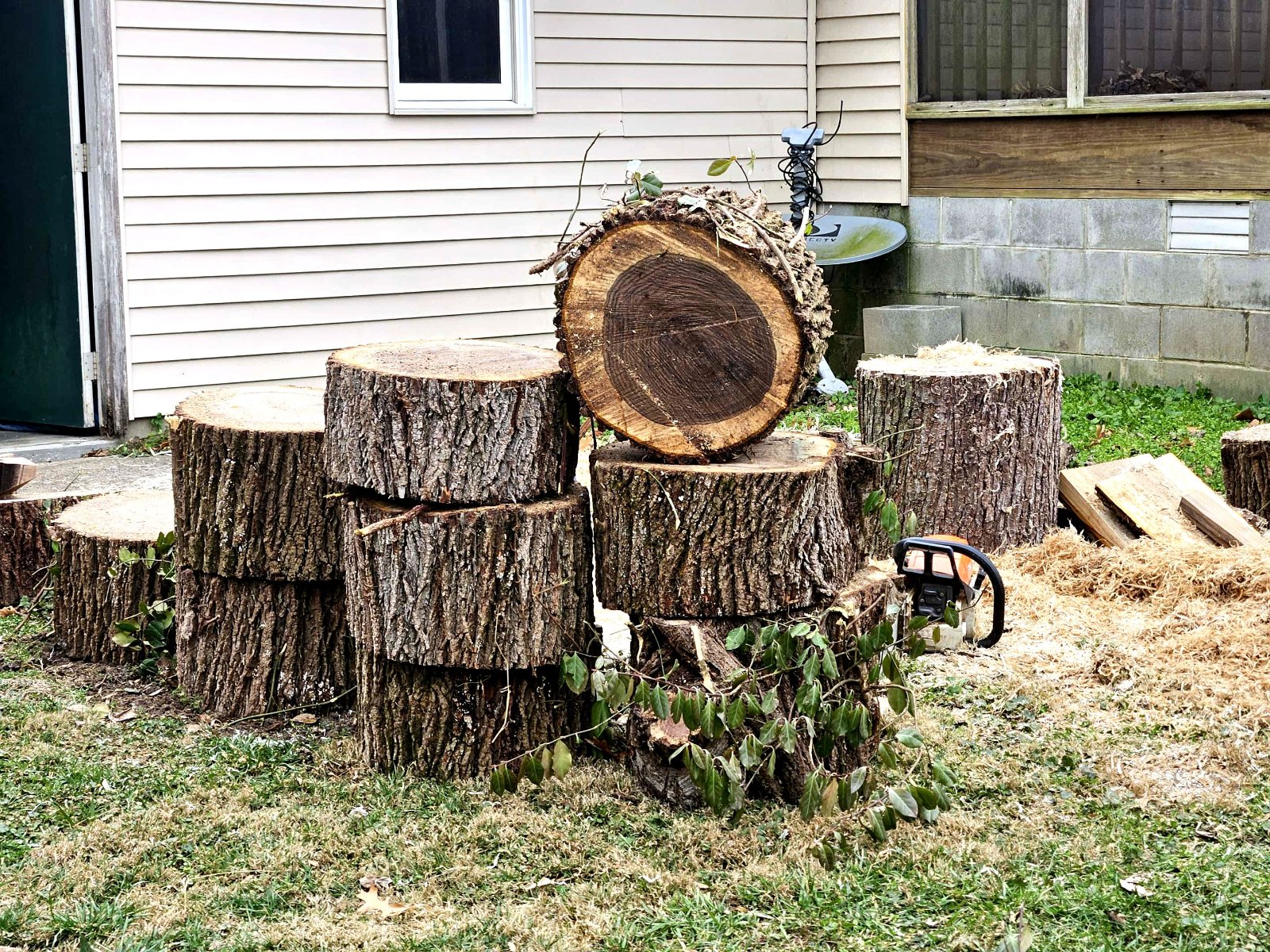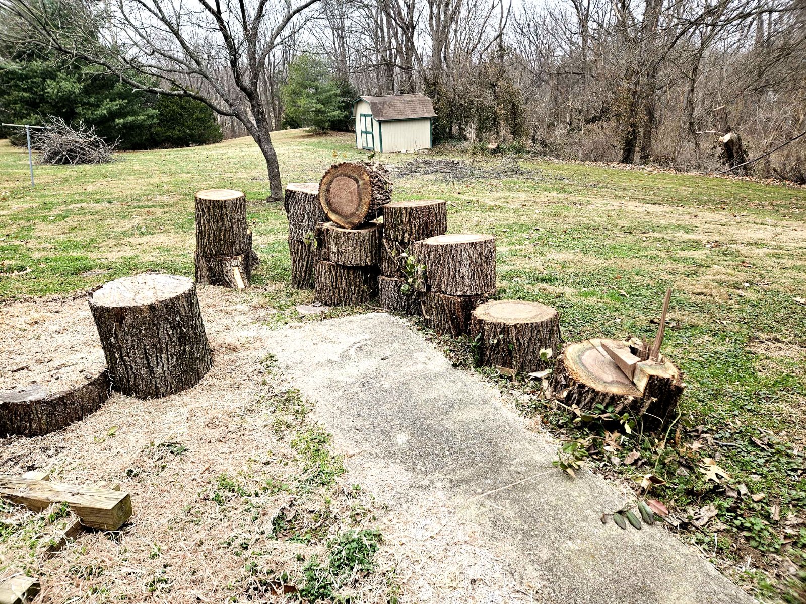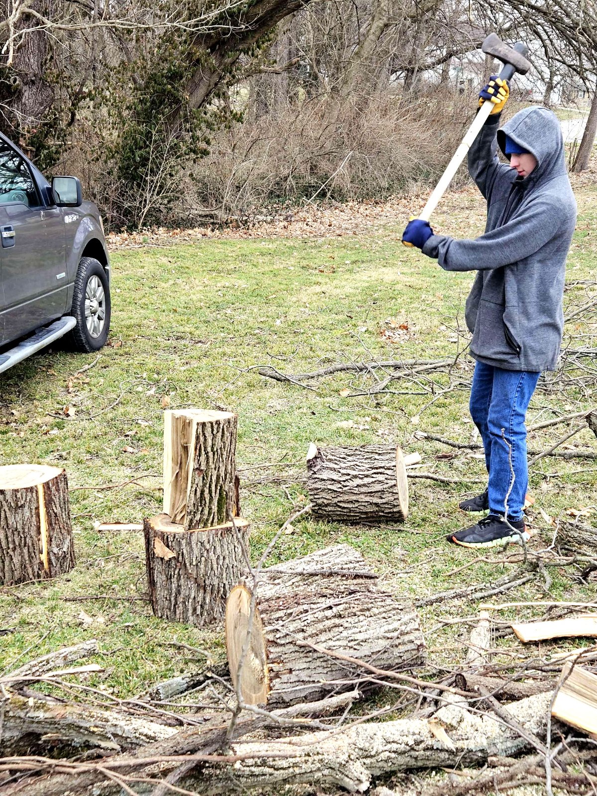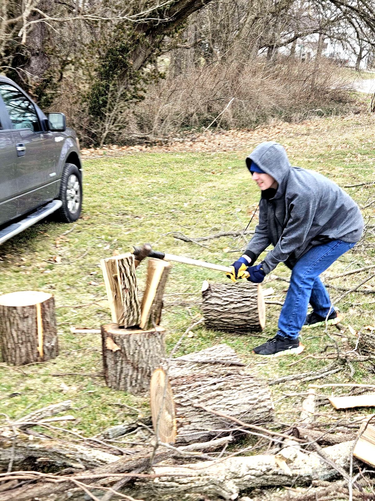 Cutting up the walnut! Thanks to church friends, we got about 2 ricks of wood for Teddy to burn, and I'm not sure, but I'm hoping for 30 bowl blanks. The last two pictures are of a 12-year-old, Parker, splitting wood for the first time with a maul. He was getting the hang of it!