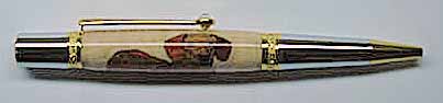 Finally got this kit done. Its a Dachshund from Exotics but is cut out by Kallenshaan Woods and all is put on a gold & chrome Elegant Sierra. According to the assembly instructions the kit has 24 pieces but about 6 of them are small. I sent Ed an email stating that getting the last pieces in was like trying to sort fly crap out of a pile of ground pepper but I'm happy with the results. I have another kit to do as we are Doxy owners and the better half would like one for herself. After doing one I know how to make the assembly of the second one easier.