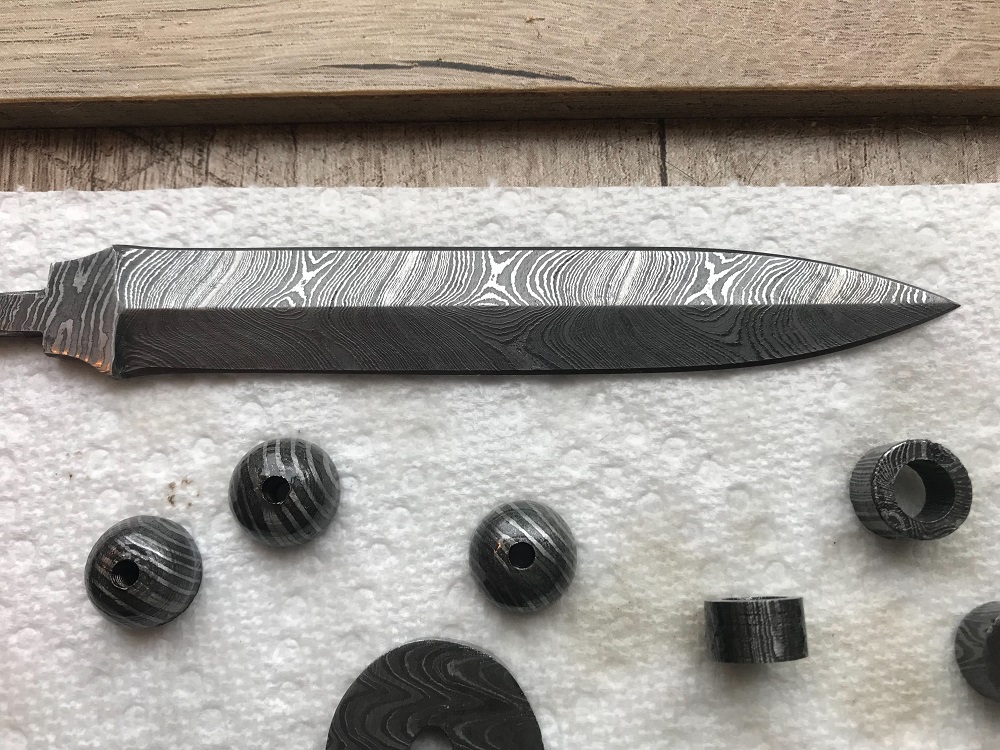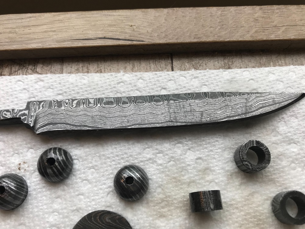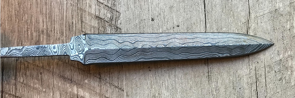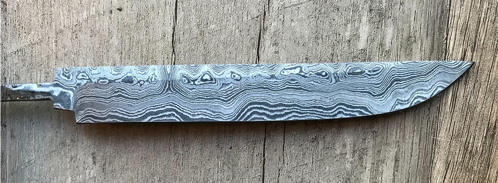 I also have three kits of "raindrop" pattern steel, 2 dagger and 1 bowie. They were an experiment to see but given the blade size they don't look a whole lot different just a slight bit of raindrop pattern to the spine the blade looks about the same. Same price for those three