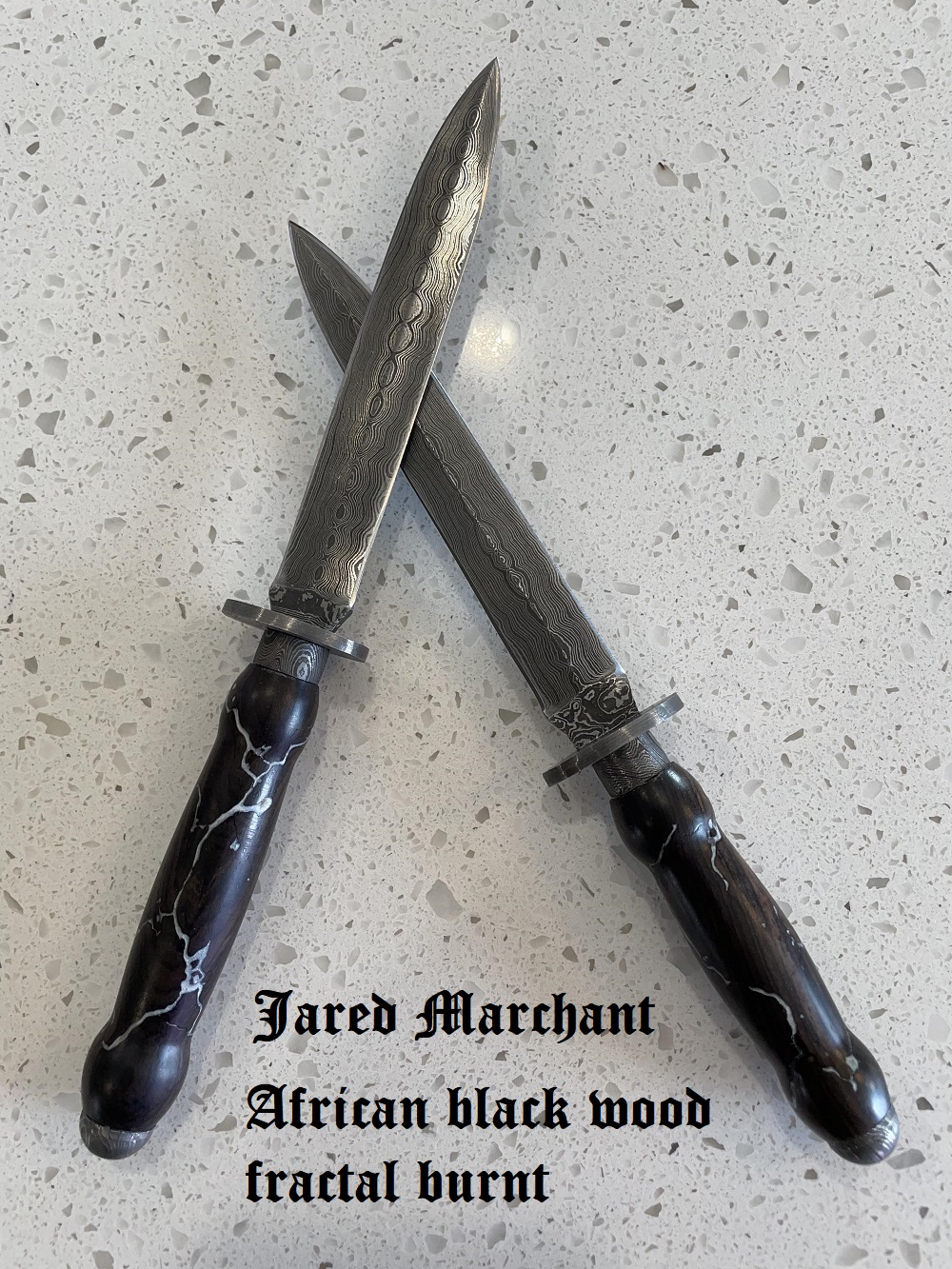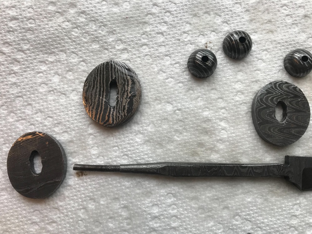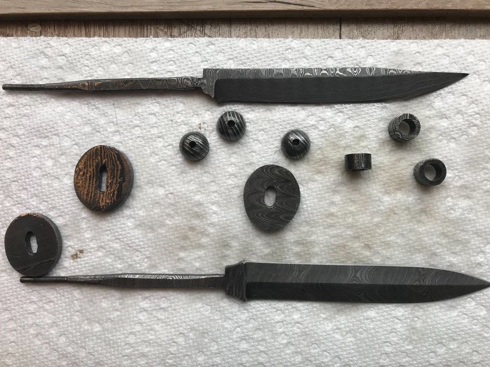 Each kit consists of a blade, guard, collar, and threaded pommel all of twist pattern damasus steel