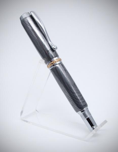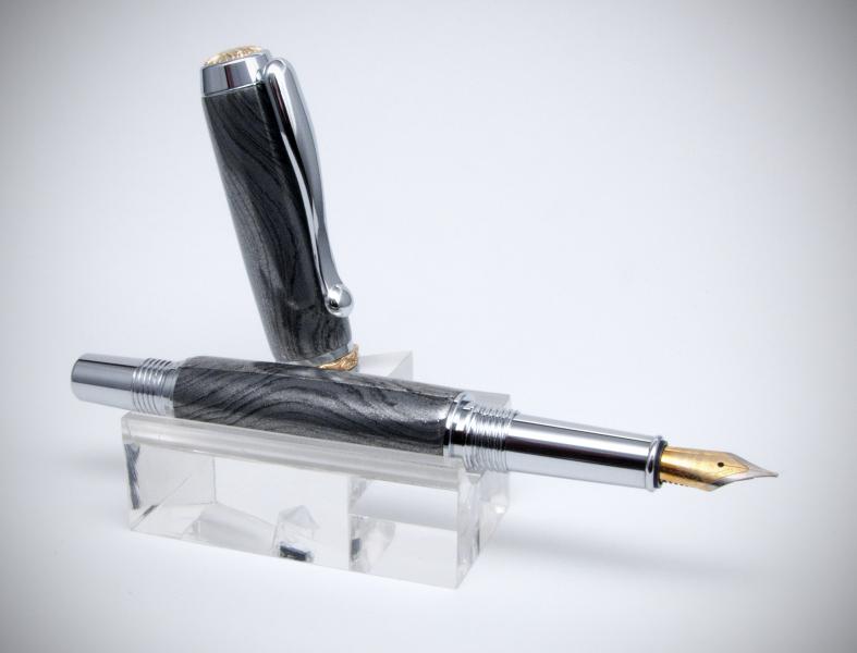 Heres one i made earlier today, been looking forward to the blanks arriving from Timberbits for 2 weeks to make this. Well they finally arrived yesterday and here,s the finished result. Cant wait to see the reaction and feedback i get at the craft shows I attend, hopefully it wont be sitting on my stall long. Drilling it was a powdery affair and it was relatively quick to turn and finish, much easier than Tru-stone. Nerve wracking to assemble as i have had a tru-stone crack in the past, but that was on a Vail. The Triton is a much better fit. C&C welcome.