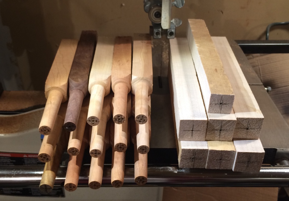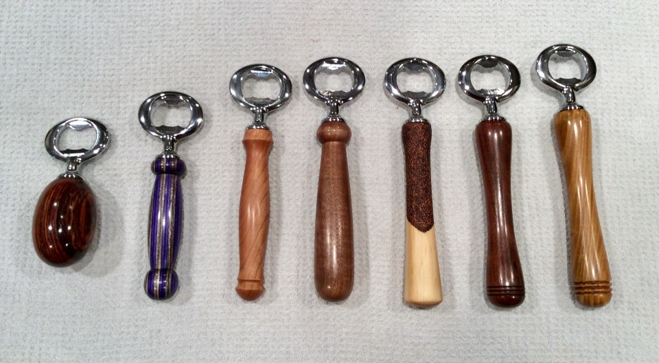 Here are some pics. One of sample openers I turned, a pic of the blanks I prepared and a pic of their finished handles.