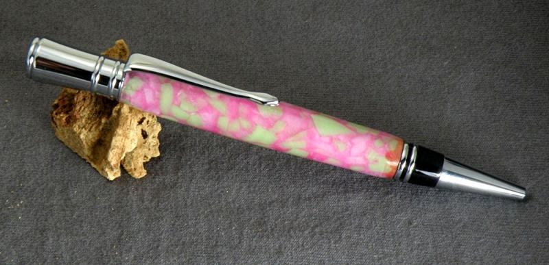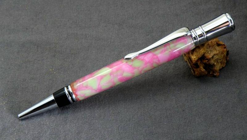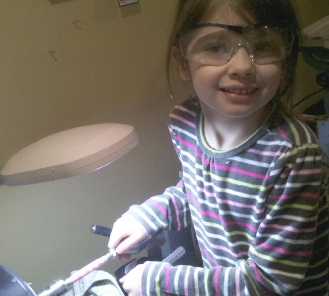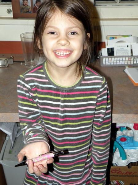 So I asked Katie (6) if she would like to make the Christmas present she gave me. She had picked out a blank and component set for us to do together as her gift, and then she planned to keep the pen. So it's a win-win. One on one time with her and she gets a great looking pink and green pen. We did almost every step together with the exception of cutting on the bandsaw. She is so excited to show it off. Here was our fun time together. And yes, she cheered up quite a bit.