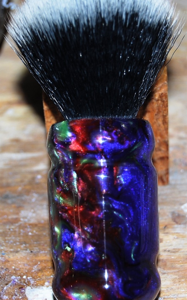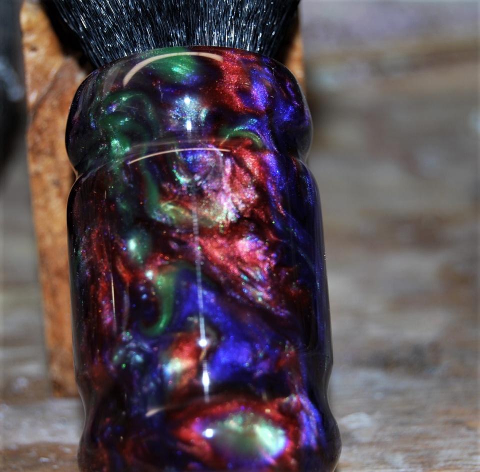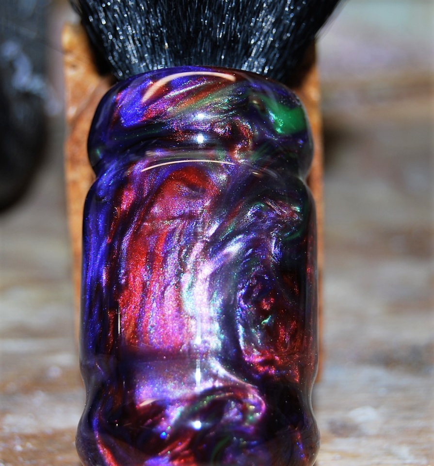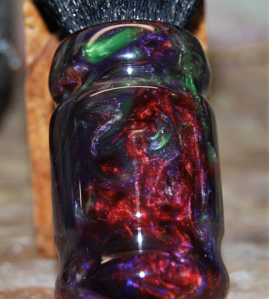 I was in a shaving brush build off on Facebook. You needed a theme. So being a huge Grateful Dead fan, i decided to do a deadhead brush. I mixed up a purple, green, blue, and red in PR and cast away. So here's my entry.