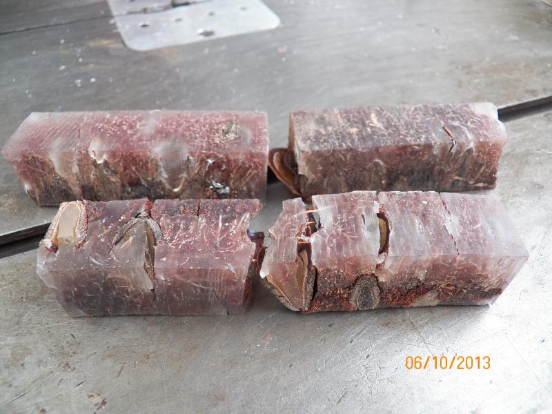 The problem was that, people didn't realise that those dry chunks of resin, would all turn-off/be removed, by the time the blank would get close to final size however, the pods being stabilised with some blue or red dye, did not appeal tom buyers as they would prefer the natural look and colours of the pod, which was, fair enough.