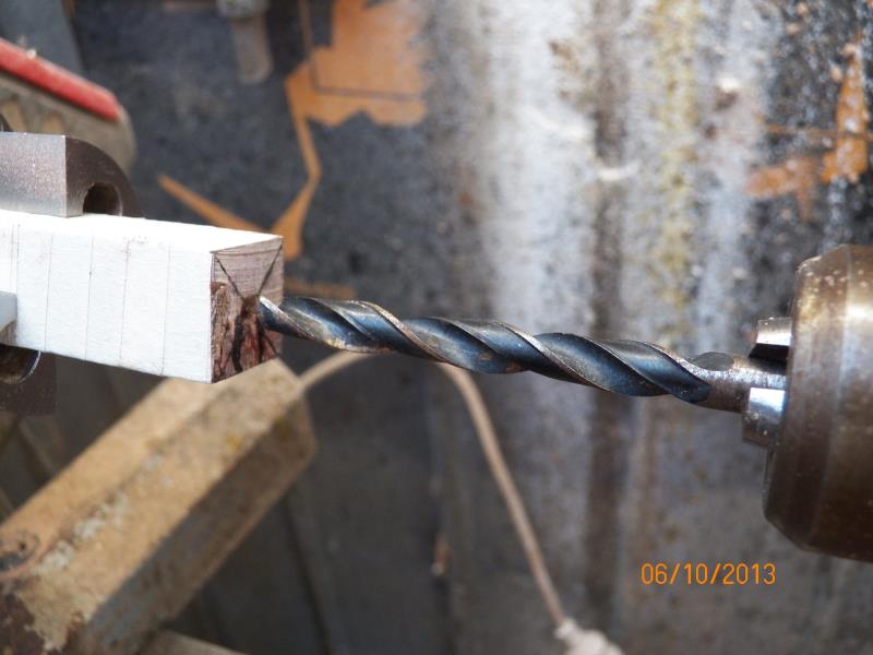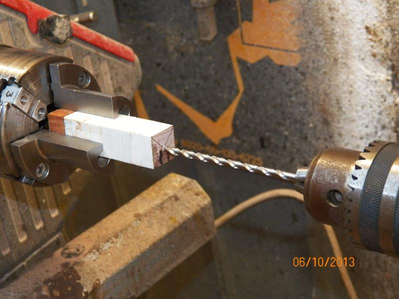 This sacrificial block can be used on a pen vice for bench drill or for lathe drilling, this is when, a long set of jaws on the chuck, can become most useful.