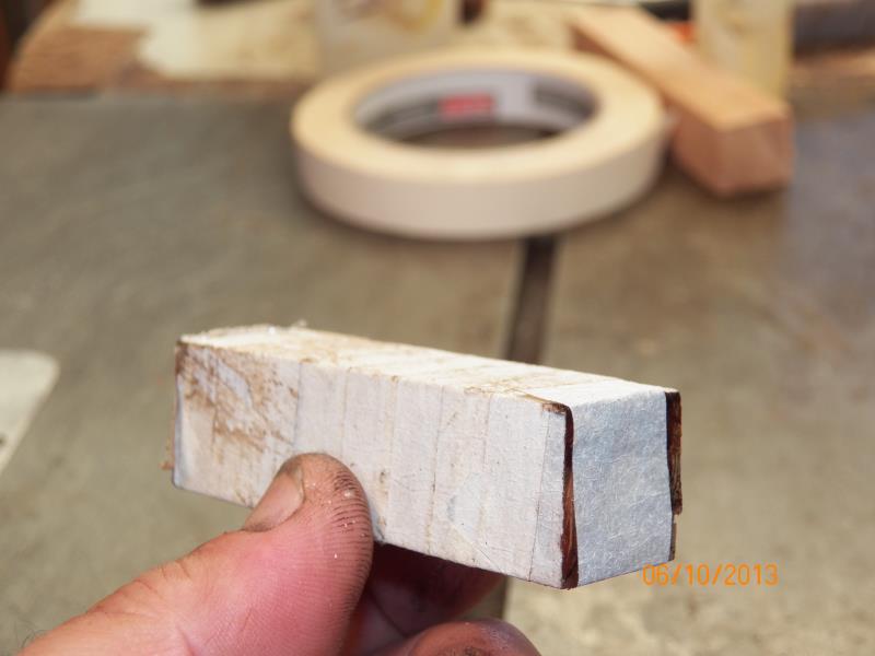 Sharp drill bits are a must, slow speeds are reccomended and removing/cleaning shavings as the drill cuts so far, are all very important details. So, considering that you have sharp drill bits and regardless if the blanks(s) is going to be drilled on a bench drill or on the lathe, the first step you should take is to, wrap the blank with some non-elastic tape (masking tape is good), 4 or 5 loops around is sufficient.