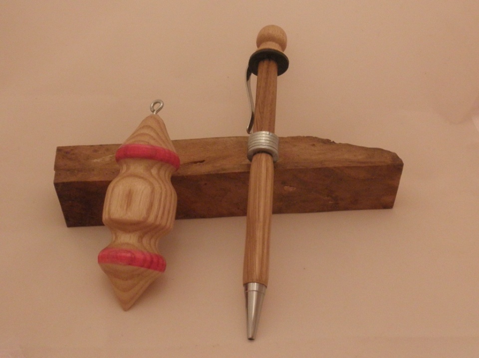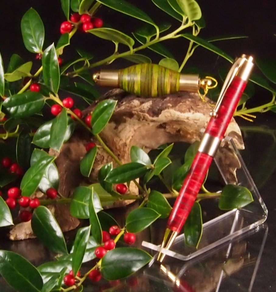 I guess that I will bite the bullet and follow Skiprat. At least my followup is on a separate page and will not be compared head to head. My pen and ornament were made with plywood, brass nipples, and brass cap nuts. I am not sure if the brass fittings are considered "construction" materials but the plywood certainly is. I used alcohol dye to color the plywood in Christmas colors. My apologies to Andy for the lack of creativity but my other ideas did not work out.