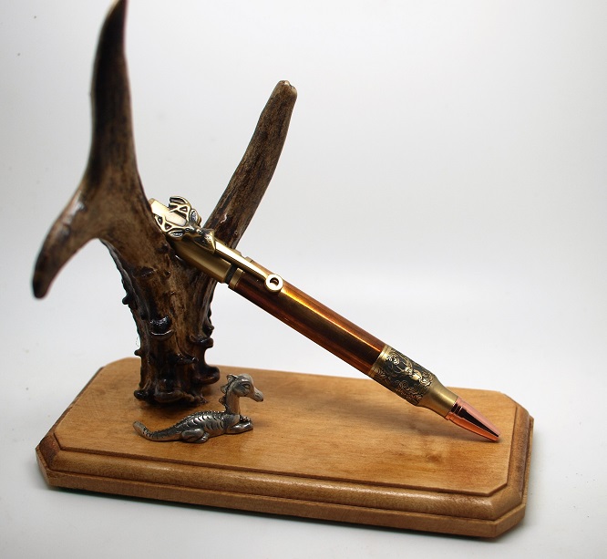 A Deer Antler Head Design Bolt action pen.