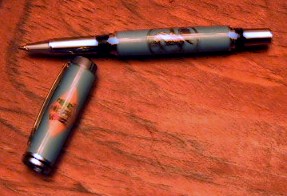 This is a not very good photo of a very good pen....the Pen was turned for me by Seamus Rooney using one of his cutout state quarter blanks. I'll be trying to get a better picture soon.