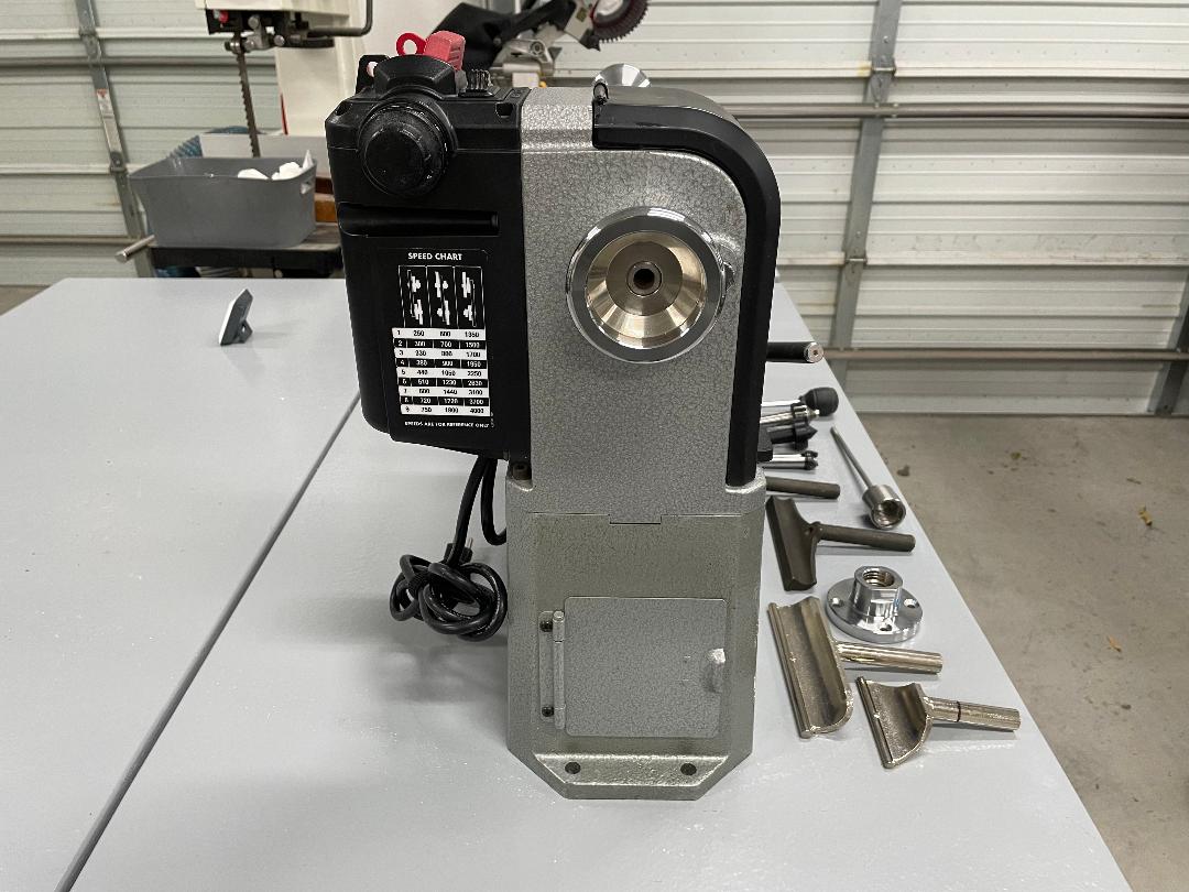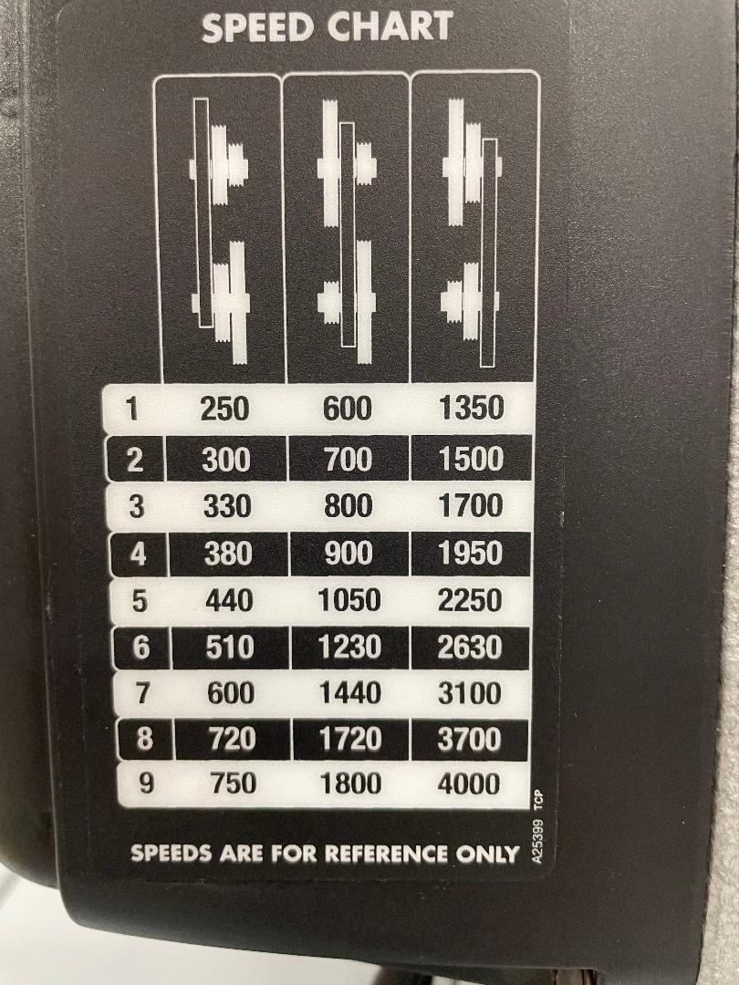 - Patented belt tensioning system for easy and quick speed changes and sets the belt at the correct tension every time for maximum power transfer and longer tool life