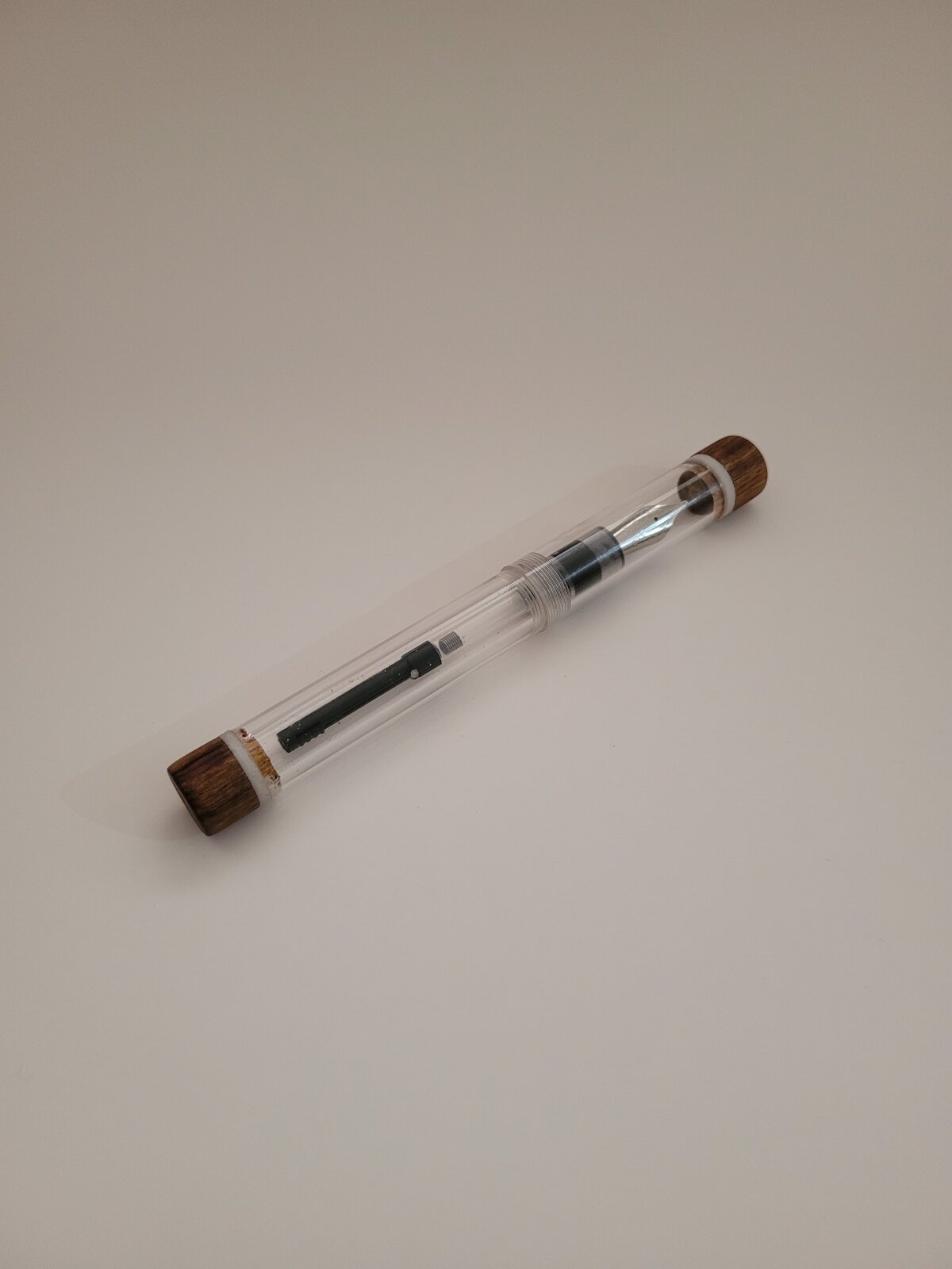 I would suggest making the tenons on the end of the acrylic, rather than the wood finials, and drilling the corresponding holes for the tenons into the finials. That way you don't end up with the overlapping materials and glue lines visible.
